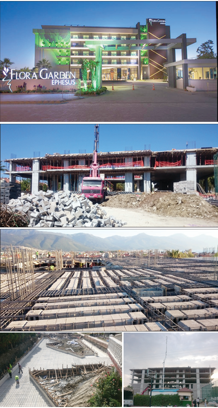 Firmamız tarafından ana yüklenici olarak inşa edilen Flora Garden Ephesus Oteli, 1000 yatak kapasitesiyle bölgenin en büyük ve en prestijli turizm yatırımlarından biridir. 5 yıldızlı otel projesi, baştan sona anahtar teslimi olarak gerçekleştirilmiş; konaklama alanları, sosyal tesisler, peyzaj düzenlemeleri ve tüm ince iş imalatları titizlikle tamamlanmıştır. Kuşadası’nın turizm potansiyeline değer katan bu lüks tesis, firmamızın büyük ölçekli projelerdeki tecrübesinin göstergelerindendir.